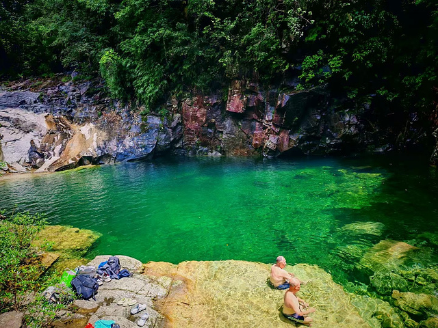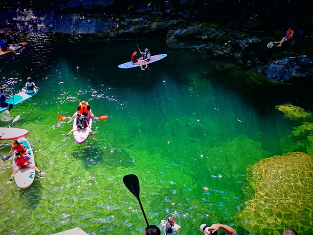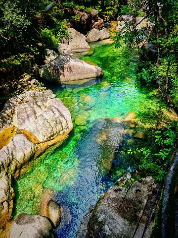 桂林龙潭江的果冻水,真的美到如其名!藏在猫儿山南麓的青山间,一汪汪潭水澄澈似琉璃,碧绿如翡翠,通透的质感像凝固的果冻,水底鹅卵石与水草清晰可见。阳光洒落,波光粼粼的水面晃着细碎金光,深浅不一的水潭沿峡谷错落,龙潭飞瀑下的碧潭更是将这份剔透美推到极致。 两岸青山叠翠,栈道绕水而行,微凉的山风裹着水汽,踩进清冽的浅滩,指尖触到温润的“果冻水”,夏日燥热瞬间消散。这抹独属于龙潭江的清透绿意,是桂林山水藏起来的清凉惊喜,随手一拍都是治愈系山水大片。