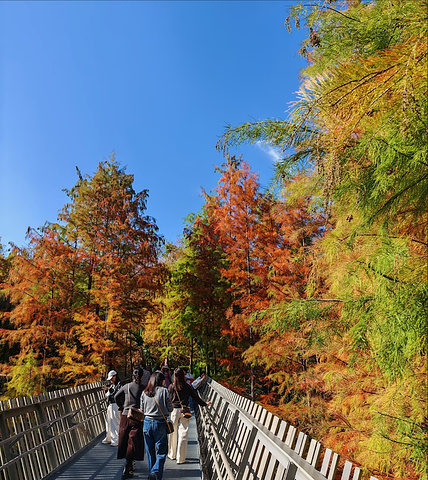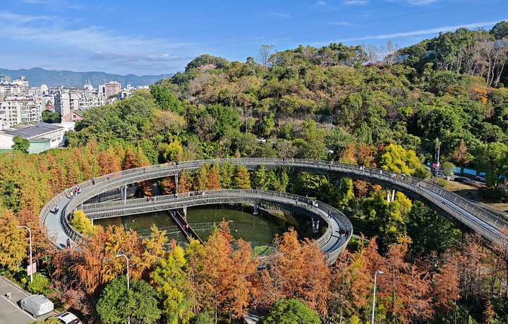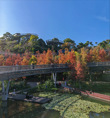 福州梅峰山地公园坐落于鼓楼区梅峰路南,是福道3号入口的核心节点,也是福州首个山地类海绵公园。东接左海、西连闽江廊线,三面青山拥一汪碧水,将钢架悬空栈道的现代设计、海绵城市的生态智慧与四季更迭的自然景致相融,全程免费全天开放,既是福州人日常健身休闲的后花园,也是游客邂逅榕城山水诗意的网红打卡地,一步一景间,藏着城市山林的独特韵味。 公园的核心魅力,在于自然景致与现代栈道的完美交融,四季皆有专属风光。冬日的池杉林是这里的限定浪漫,归水潭两岸的池杉褪去翠绿,晕染出橙红、赭黄的渐变色彩,与澄澈湖水相映成画,福道的钢架镂空栈道蜿蜒穿梭其间,低头可见杉林枝叶,抬头便是层林尽染,随手一拍都是油画般的景致;初夏时节,山坡上的波斯菊肆意绽放,粉白紫的花海为青山添了温柔;平日里则林木苍翠,鸟鸣啾啾,行走在福道上,仿佛置身城市森林氧吧,清新的空气裹挟着草木清香,彻底消解城市的喧嚣。而独有的水上栈道更是点睛之笔,步道与湖面平齐,行走其上如在水中穿行,可清晰看见湖中的游鱼水鸟,沉浸式感受湖光山色的美好。 海绵城市的生态设计,是梅峰山地公园区别于其他城市公园的独特标识,尽显生态巧思。作为福州首个山地类海绵公园,它依山地汇水的天然地势,打造了雨水花园、湖边湿地、旱溪、双层蓄水湖的五级水循环系统,山洪经石笼子、植草沟层层拦截过滤,最终汇入蓄水湖,天晴时湖水又用于浇灌植被,实现了雨水的“渗、滞、蓄、净、用、排”。园区道路采用透水下垫面,福道栈道则单柱落地、基础最小化,最大程度保留了原始的生态肌理,如今园内湖水澄澈,水鸟栖息,鱼虾成群,形成了自给自足的生态循环系统,让公园成为福州生态建设的鲜活样板。 作为福道的重要入口,这里的游玩体验丰富且适配全人群,休闲与健身兼具。福道的钢架悬空栈道是核心亮点,获评国际建筑大奖的设计让步道依山势起伏,既无陡峭台阶,老人孩童也能轻松行走,又能俯瞰公园全景与城市风光,是徒步、慢跑的绝佳选择;园内的风铃塔、沉水桥、山中茶室等景观错落分布,登塔可赏杉林湖景,听风铃轻响,静坐茶室可品一杯清茶,享林间悠然,动静之间满足不同的休闲需求。栈道的暖黄色LED灯让公园的夜景同样动人,夜晚华灯初上,福道如金色丝带缠绕山间,湖光山色与城市灯火交相辉映,氛围感拉满。 公园的交通便捷性与亲民属性,让它成为福州日常休闲的优选。地处鼓楼核心片区,公交53、66、101路等可达梅峰路站,自驾可停东门停车场或市民广场地下车库,周边社区步行可达,真正实现“出门见园”;全程免费开放,无门票消费,仅园内少量茶饮小吃需低额花费,性价比拉满。园区的细节设计也尽显人文关怀,水上栈道配备独立排水系统,雨天不积水,福道沿线散落着休憩座椅,满足游人歇脚需求,无论是独自晨练、亲子游玩,还是好友结伴打卡,都能在此找到惬意。 当然,公园也有少许小缺憾:福道的钢架镂空步道对恐高者不够友好,需谨慎行走;观景台护栏间隙稍大,带孩童游玩需时刻看护;园内小卖部较少,饮品小吃选择有限,建议提前自备饮用水和小食;夏季林间蚊虫较多,做好驱蚊准备会让体验更佳。 总体而言,梅峰山地公园是福州山水城林相融的绝佳体现,它跳出了传统公园的局限,将生态功能、休闲价值与城市景观完美结合。在这里,你可以冬日赏杉、夏日看花,漫步福道邂逅山林野趣,行走水栈感受湖光温柔,也可以登高远眺,将榕城的城市风光尽收眼底。它不仅是福道上一颗璀璨的明珠,更是福州人幸福感的缩影,用一方山林湖水,诠释了“让森林走进城市,让城市拥抱森林”的美好愿景,无论是本地市民日常休闲,还是外地游客深度游榕,这里都是不可错过的打卡地。