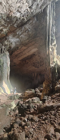 走进桂林平乐二塘镇乐塘村的朝天岩,便闯入了大自然耗时亿万年雕琢的地下宫殿。这座原生态喀斯特溶洞藏于山腰,因洞口宽敞朝天而得名,气势恢宏,被誉为罕见的大型厅堂式洞穴,洞顶最高近60米,内部洞洞相连、层层叠叠,原始风貌保存完好。 沿山间小径步行十余分钟抵达洞口,抓着绳索缓缓下入,清凉湿润的空气扑面而来。洞内钟乳石、石笋、石柱千姿百态,有的如擎天巨柱,有的似流泉飞瀑,还有的像瓜果生灵,形态逼真,在光影下更显奇幻。最令人惊艳的是丁达尔光效,阳光穿透洞口洒下道道金光,穿透薄雾,将幽暗洞穴点亮,宛如仙境降临,随手一拍都是大片。 漫步其中,脚下是历经岁月的石田,耳畔是水滴轻响,每一步都充满探索的惊喜。这里没有过度开发,保留着最本真的野性与壮美,既能感受地质奇观的震撼,也能体验户外探洞的乐趣。 一洞藏天地,光影醉人心。平乐朝天岩用自然鬼斧神工,书写着桂北山水的隐秘浪漫,是小众探秘、亲近自然的绝佳去处。