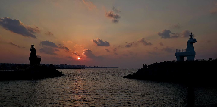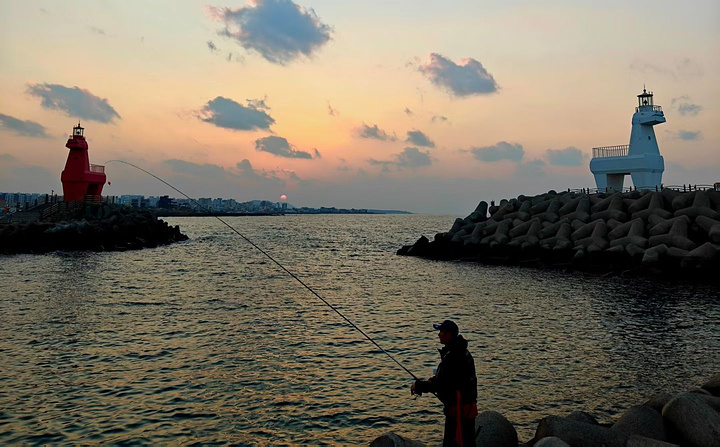 奔赴济州岛山海,只为梨湖海水浴场的红白马灯塔。红白小马造型伫立防波堤,以济州矮脚马为灵感,一红一白守望碧海,是海岸最温柔的坐标。 风携咸湿气息,浪拍礁石作响,沿着堤岸漫步,蓝天、蓝海与灯塔相映成画。黄昏降临,夕阳缓缓沉向海平面,天空晕开橙粉与紫蓝渐变,海面铺满碎金,灯塔被镀上暖柔光晕,剪影与晚霞交织,电影感拉满。 静立岸边,静待最后一缕阳光洒落,看天色慢慢转柔,海浪轻晃着落日余晖。这一刻,时间放缓,烦恼被海风带走,只剩海边微醺的浪漫。贩卖最后一刻海边的微醺阳光,把山海温柔与落日浪漫,妥帖收藏心底。