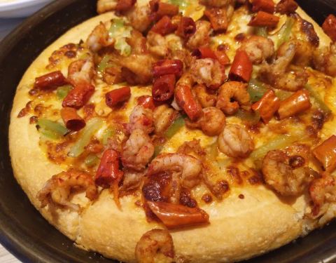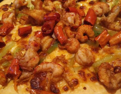 麻小披萨好吃饼底外酥里嫩,青椒丝清脆爽口。小龙虾Q弹微辣,辣椒花生干脆可口,可谓夏天饮食之首。