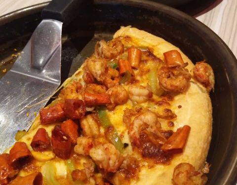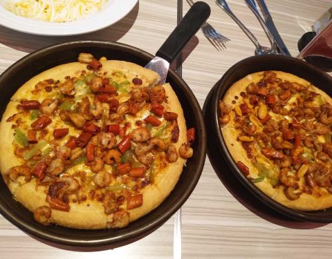 点的披萨还有芝士焗饭,鸡翅,虾的味道很不错,一共两个人吃的,很撑,下次有空还来。