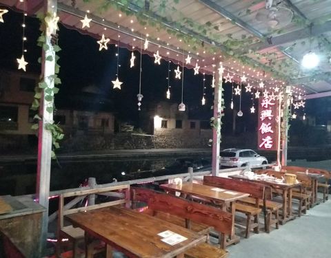 性价比很高,饭菜也非常好!坐在河边吃饭很是惬意。
