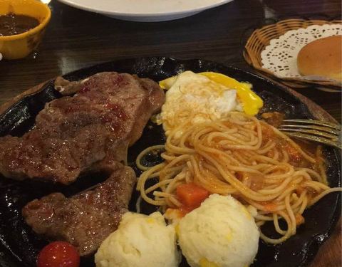 好久没吃牛排了,我们点了两份菲力牛排,女朋友的那一份牛排很嫩,吃起来很脆,好吃,一点筋都没有,我的就劲道十足,哈哈,很好,有的嚼,爽,这边的水果相当新鲜,而且也合我口味,有苹果,香蕉,哈密瓜,果冻...好久没吃牛排了,我们点了两份菲力牛排,女朋友的那一份牛排很嫩,吃起来很脆,好吃,一点筋都没有,我的就劲道十足,哈哈,很好,有的嚼,爽,这边的水果相当新鲜,而且也合我口味,有苹果,香蕉,哈密瓜,果冻口感也合适。还有酱料,最最重要的其实是那个玉米浓汤,超级好喝。嗯嗯,不错的一次用餐。