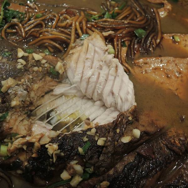 鸡翅——稍微有点油腻,不能吃太多,但是很入味,微甜口。鱼肉细嫩入味,汤汁味道也好。很大一条鲤鱼