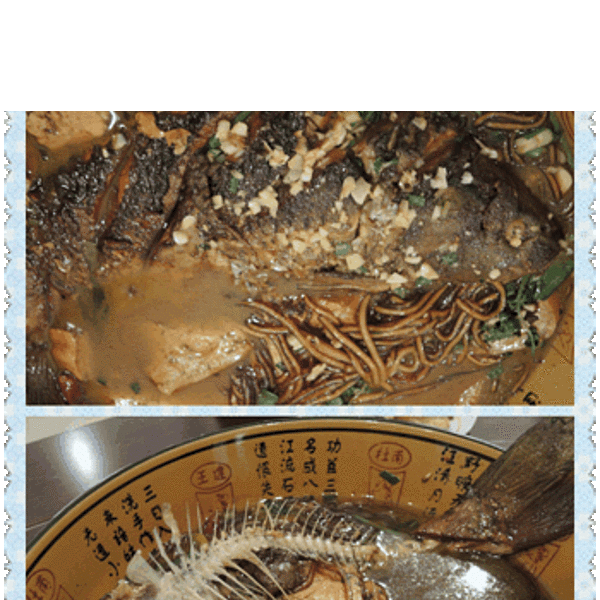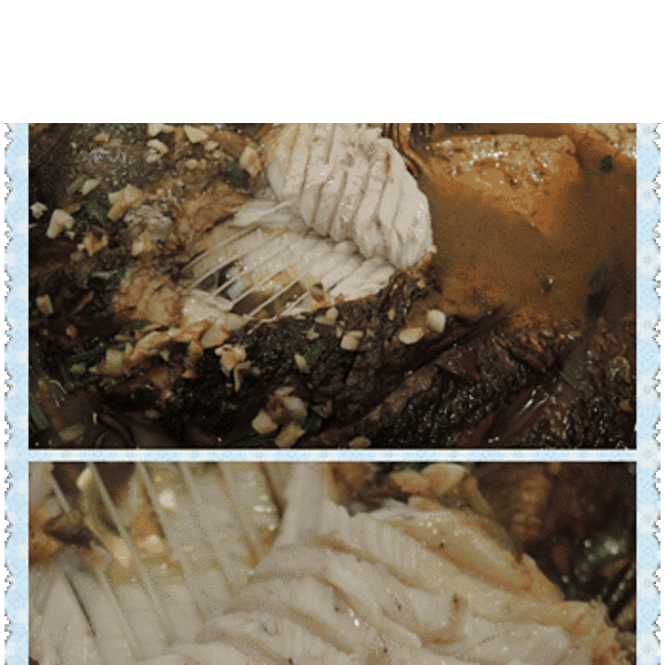 - 鸡翅——稍微有点油腻,不能吃太多,但是很入味,微甜口。鱼肉细嫩入味,汤汁味道也好。很大一条鲤鱼