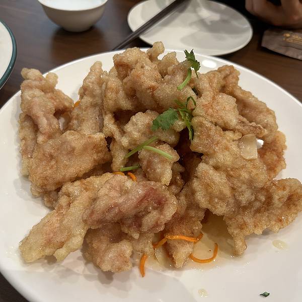- 锅包肉 外脆里嫩 汁儿是淡黄色 酸甜口儿和糖醋里脊口味差不多,但口感上更脆 挺好吃