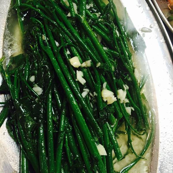 第一市场自己挑选的海鲜,超级喜欢吃对虾,70块一斤,加工费15块一斤,海胆10块一个,加工费也是十块一个。海南的这个野菜叫做五指山野菜,我和老公都很喜欢吃