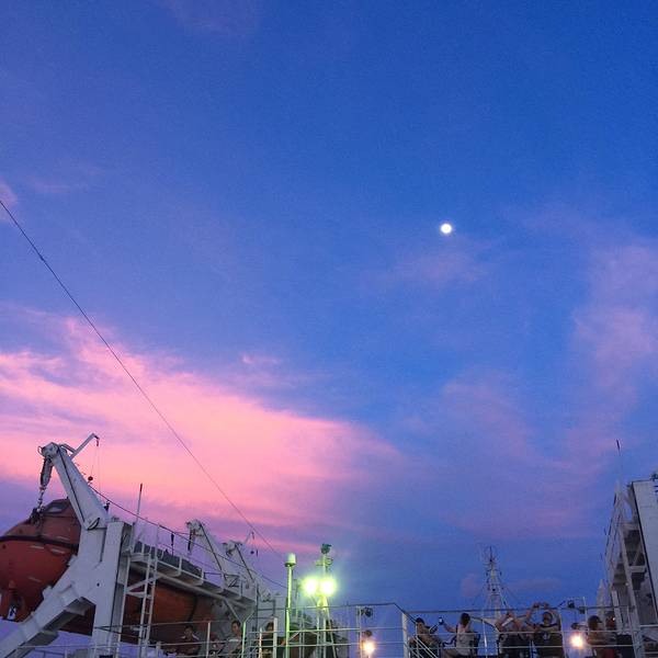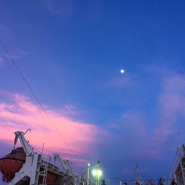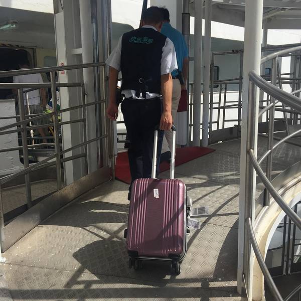- 登船,北部湾之星的管家非常体贴,会帮每位客人拉行李。今晚特别晴朗!离码头越近,内心越是很激动