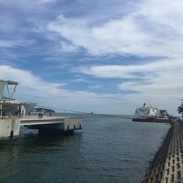 中午退房至凤凰岛国际邮轮港,登船!前往西沙群岛的北部湾之星号就是从这里起航!