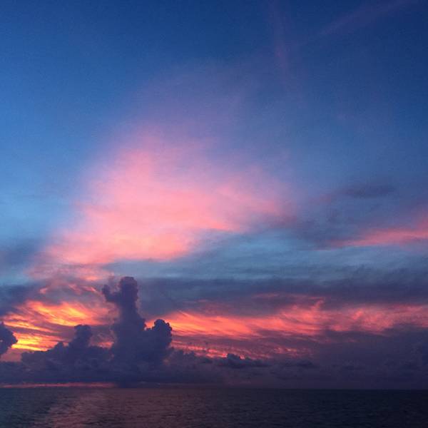 中间有一段时间有点晕船,管家说去外面吹吹风会好一点,所以并不是我喜欢待在甲板上挡着情侣拍照,被虐我心里也不是滋味啊。另外据说晚上侧着睡会好一点,不那么容易晕,所以推荐大家晚上都侧卧而眠。