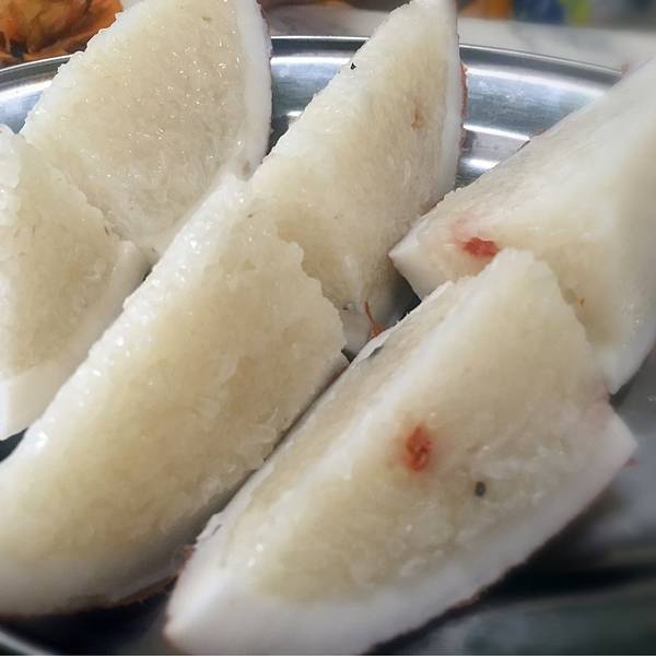 海南特产,椰子饭,糯糯的,甜甜的,清香扑鼻!8点过,带着一身咸咸黏黏回到房间,彻底冲洗,又焕然一新,真想体验酒店里面椰林里的星光房,躺在里面听海,数星星……