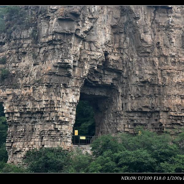 老象峰的山门牌楼上可能经常往下掉碎石,所以在游客头顶之上的半空处拉了一个网子增加保护。我仔细看了看,还真有不少碎石块被保护网兜住了。