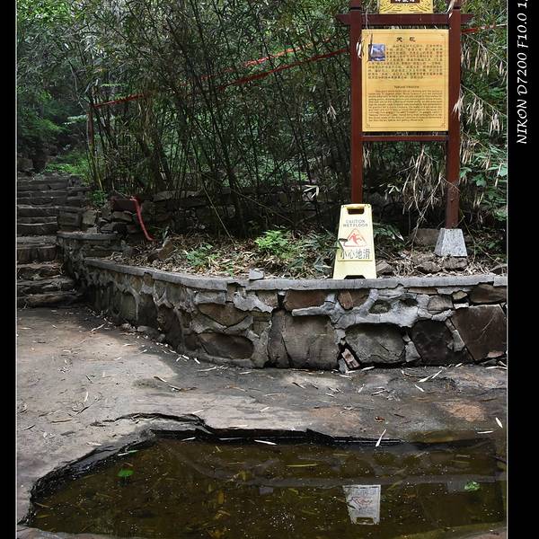 相比“香炉洞”来,这“天砚”景点可是有些牵强了。要不是这滩小水洼旁边立着一块说明牌子,我真以为那不过是下雨后因路面不平造成的存水的水洼呢。