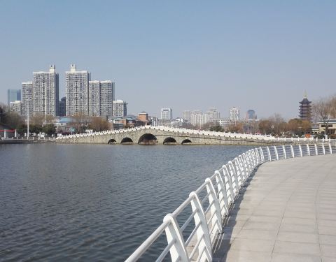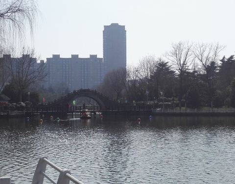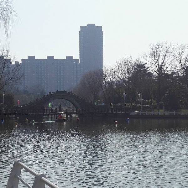 继续向前走就到了拱桥,远处可以眺望宝塔和其他景点,从桥上下来后是老人活动区,其实这里主要就是葱郁的绿树和一些供游人小憩的长椅,坐在这里,伴着微风,沐浴着暖阳,感受岁月静好,这或许不仅是老人的专利,也是任何在每日忙碌节奏之外,想要暂时脱离一下现实,放空思绪,调伏心性的城市上班族的一种享受吧。