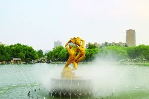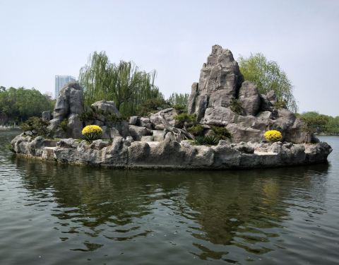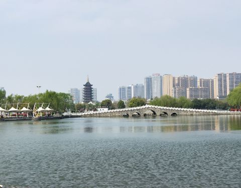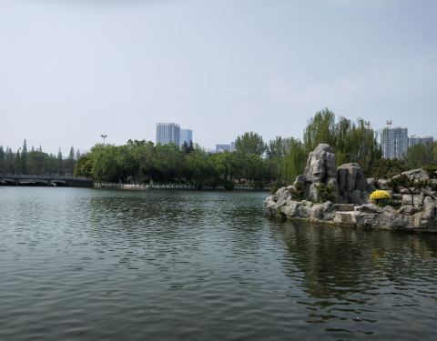 公园门外有停车场,停车5元一次,公园正门宽阔,两旁墙壁似乎是编钟造型,进公园之后左手有两只孔雀,可以付费与之合影,在景区图上看有十处风景景点,名字很有诗意,个别名称甚至跟杭州西湖景点名称有异曲同工之妙(例如雷湖夕照),但这些景点没有太多标志牌提示,因此只能靠自己意会了。