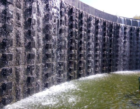 老人活动区对面是水上舞台,其实就是立在水中的半圆形的木质舞台,可能在良辰佳节时,这里会有文艺活动或者表演。
