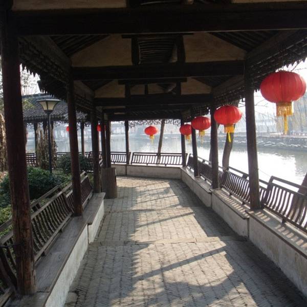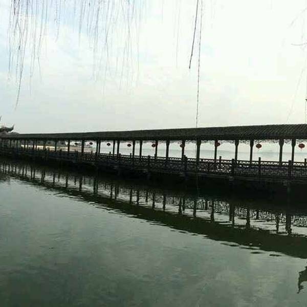 除了古镇的生活气息,锦溪的自然风景着实是好的,在长桥边有林荫大道,两旁都是挺拔秀气的绿树,在中间拍照什么的都很好看,旁边有些伸到水里的栈道回廊,也可以上去走走,还有一些专门在这钓鱼的,是个不错的去处。