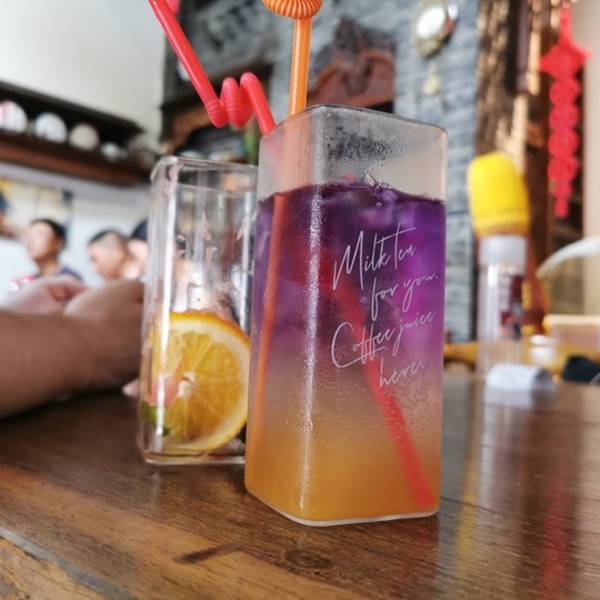 回首天猫:不要看他家古色古香就小看了他家的饮品,我买了一杯摩卡还有他家两种气泡水,摩卡很正宗,手艺不亚于星巴克,气泡水更是没得说,调出来的颜色太太太太太美了!