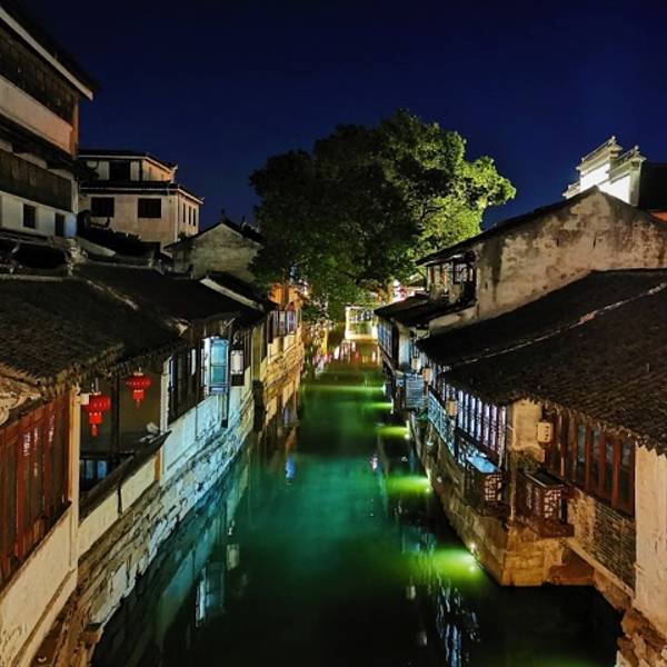 锦溪古镇距离古镇周庄非常近,车程距离大约10公里左右的样子,在景区刚进去入口的位置有一个古莲桥,夏季这里会开满莲花,非常美,里面还有一座莲池禅院,又名莲花池、古莲寺。夜景很漂亮。