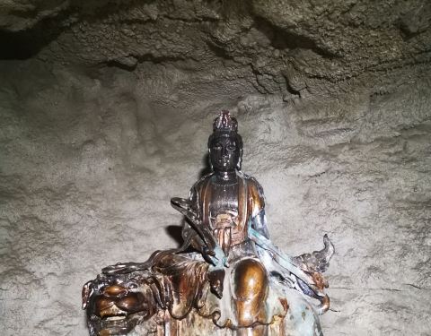 总体来说一般吧 山顶的道观有点破有点小 从外观看还是不错蛮古色古香的 适合外面拍照因为人少所以门口交了点钱一路开车上山顶的 如果有人和你攀谈千万别以为多好心 因为走的时候他会擅自给你系上福带收钱里面的洞是人工凿出来的没啥看头 就是一堆寺庙常见的雕像 湿气很大蛮凉快的 但不是韭山洞钟乳石那种 所以大家自己看值不值得吧~票价一人三十