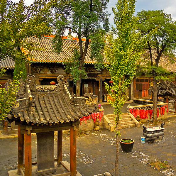 资寿寺就位于超有人气的王家大院旁边几公里处, 全国重点文物保护单位。 蓝天白云下首先见到一个红色大牌坊,进入山门一条长长的甬道,红墙碧瓦,艳丽整齐。这样的寺院就是有看点,免费又无人,年代久远,艺术价...