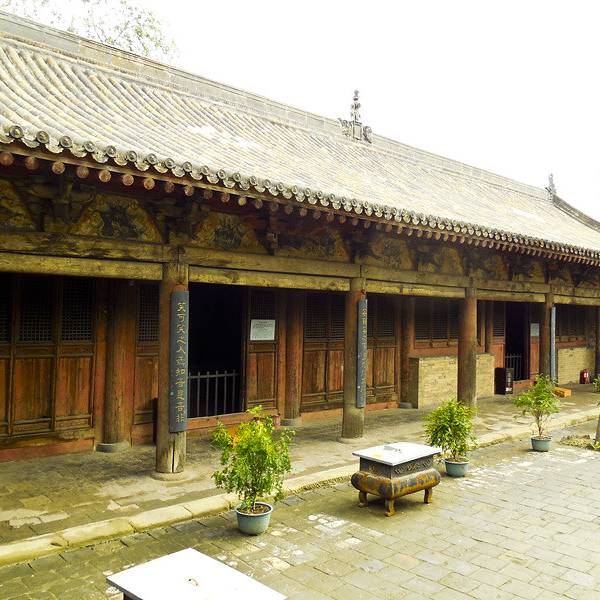 资寿寺就位于超有人气的王家大院旁边几公里处, 全国重点文物保护单位。 蓝天白云下首先见到一个红色大牌坊,进入山门一条长长的甬道,红墙碧瓦,艳丽整齐。这样的寺院就是有看点,免费又无人,年代久远,艺术价值不可小觑。旅游景点火不火很大程度靠宣传,而咱这三晋大地上的宝贝缺少的就是宣传呀。静升镇主马路上有一路公交到资寿寺,但下车后还要走一段路,近十分钟,不太方便,还是要打车前往。游览时间约40分钟到一小时左右。 附近除了王家大院还有静升文庙、 后土庙、王氏宗祠和静升古镇古街道等很多内容呢。全部游览需要一整天时间。从平遥和介休都有旅游车或班车,交通方便,且静升镇吃住方便。这里还是去绵山最近的地方,时间富余还可以去绵山一游。