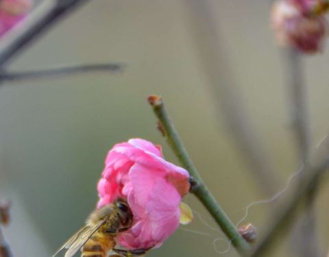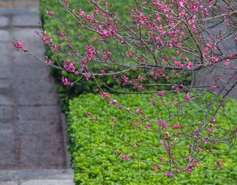 梅林佛国,果然名不虚传。立春来了,寺里的桃花已经盛开,梅花含苞吐蕊,曲径通幽处,禅房花木深。