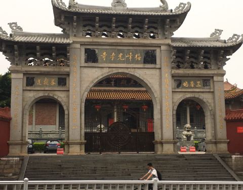 莆田地区这寺庙一带以前广种梅花,所以这叫梅峰寺,以前是小庙,现在是大寺院了,免费参观。进入后 依山而建,不断登高,可以看看的寺院哦。