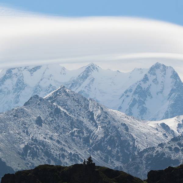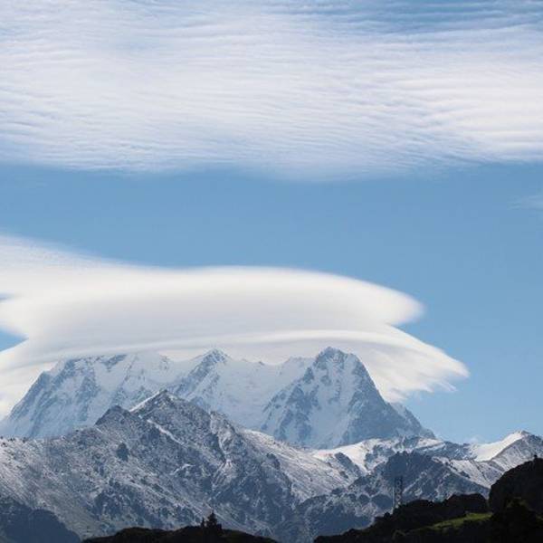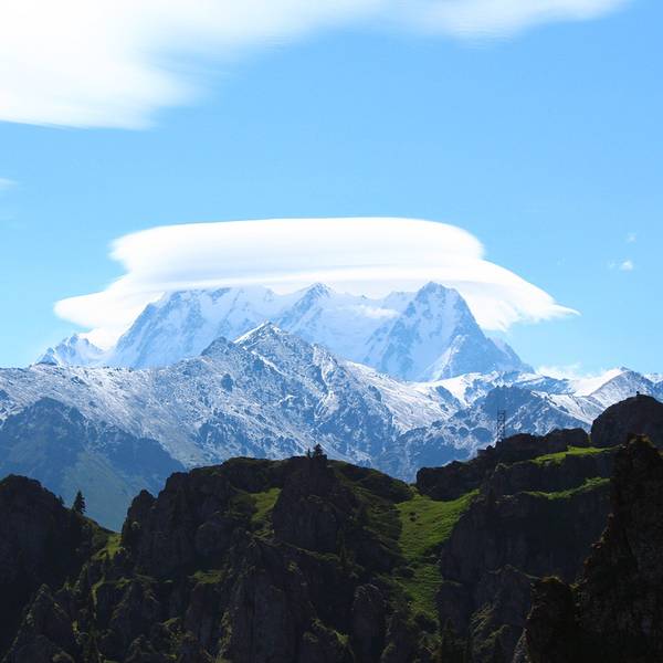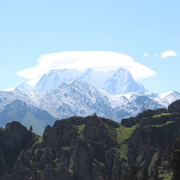 天山博格达峰海拔5445米,终年积雪,冰川延绵。今天不仅看到了,还看到博格达雪山带了一个帽子天山博格达峰海拔5445米,终年积雪,冰川延绵。今天我们的人品那是相当的好,因为听说一般上来都是看不到对面的博格达雪山的全景的。今天不仅看到了,还看到博格达雪山带了一个帽子。嘿嘿
