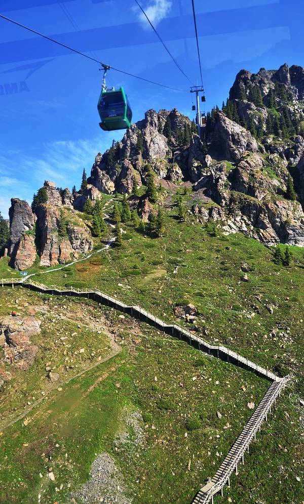 车子开到这,就不能再走了,需要换乘缆车拔升到山顶了。在缆车站稍事停留,看看景儿拍拍照。
