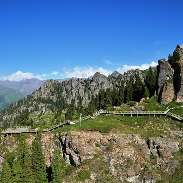 缆车到达终点后,我才发觉马 牙山 好像是在 天山 里新开的景区,我在去哪儿网和蚂蜂窝上都找不到它的点评,我到达山顶后,看到很长的木质人工栈道还“禁止通行”呢。