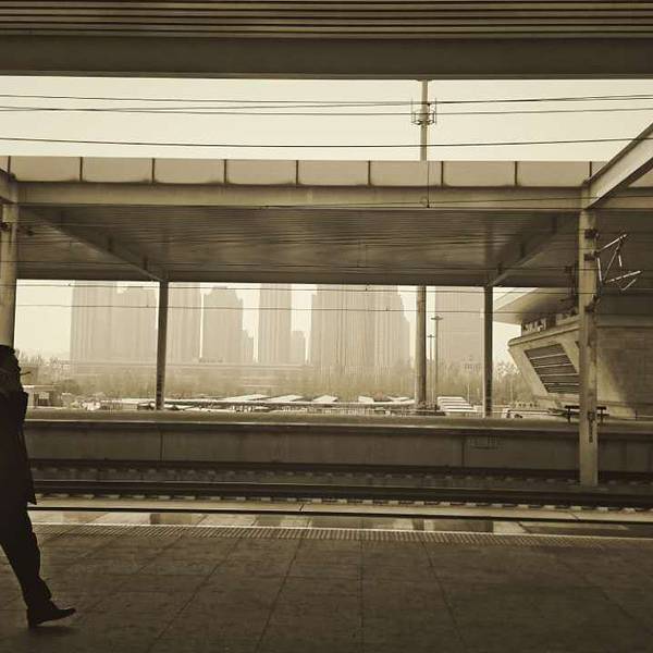 许昌站 曹丞相的地 一位大哥叼着烟 边打电话边抽着