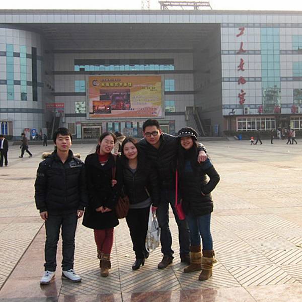 加上两个男闺蜜,我们的队伍又壮大了。 合照背景是位于黄石大道的工人文化宫。
