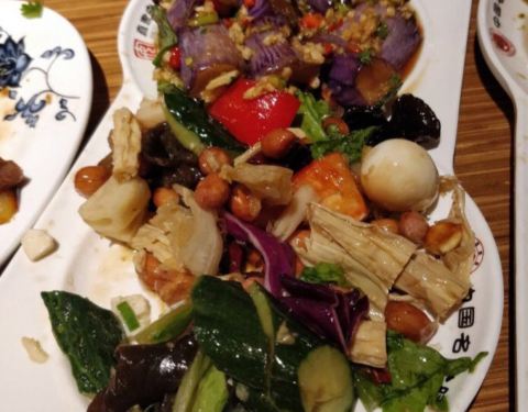 原来安家罩饼晚上做夜宵生意,11点才打烊。“醋溜苜蓿肉”也不错。总店叫是叫牛肉罩饼,但实际以炒菜为主