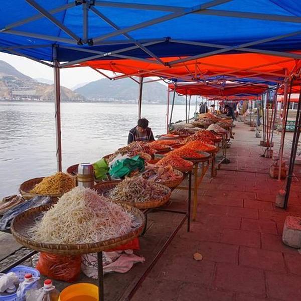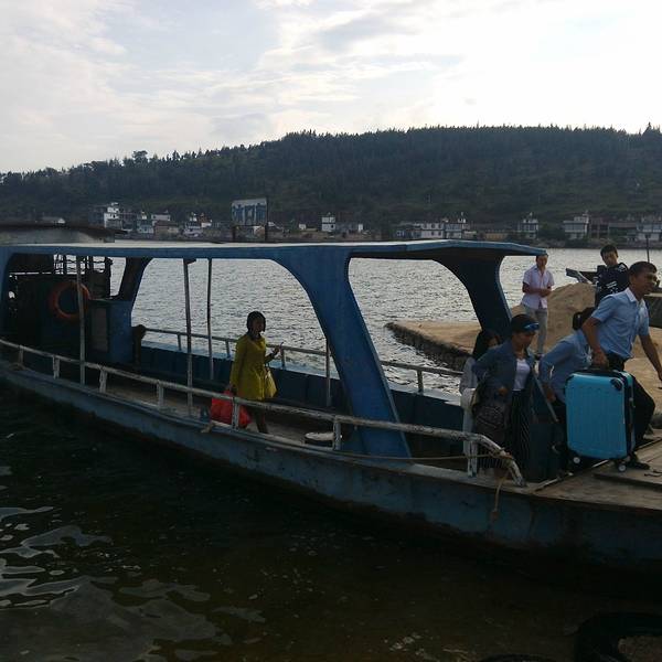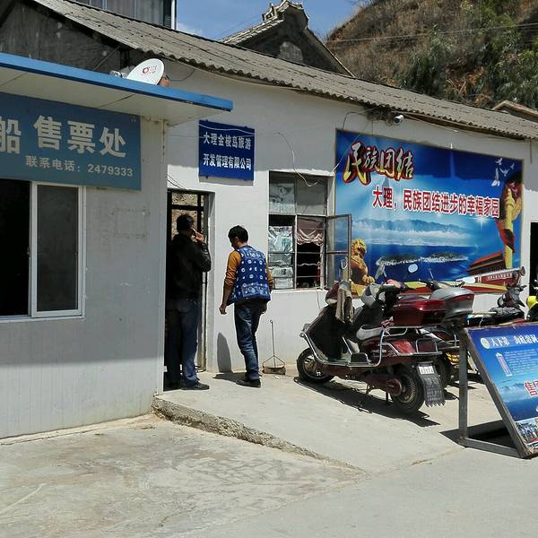 从大理机场,大约二十分钟就到达金梭岛码头。金梭岛来回船票是五元,告诉售票住哪家客栈即可