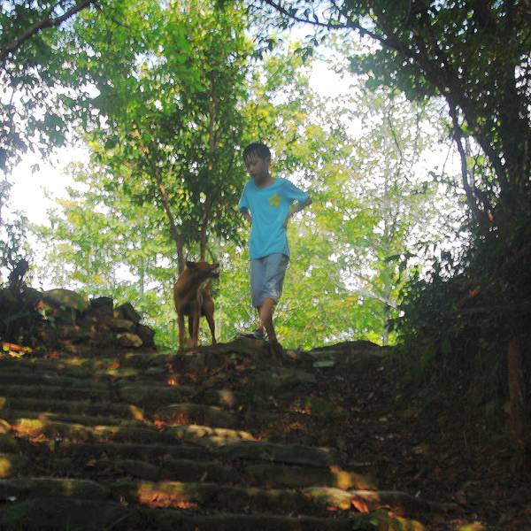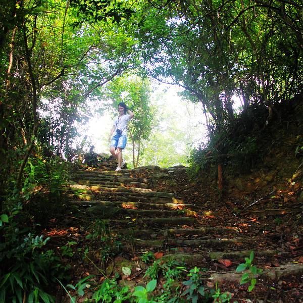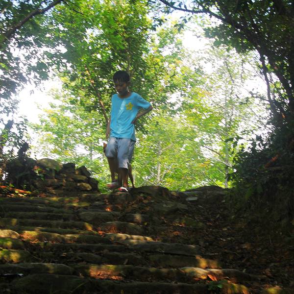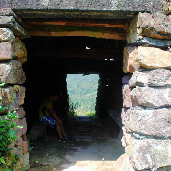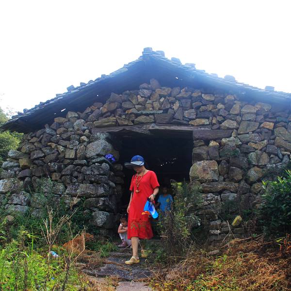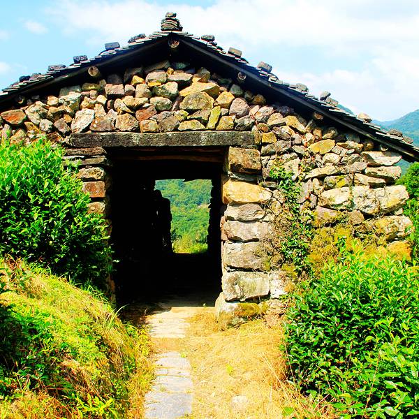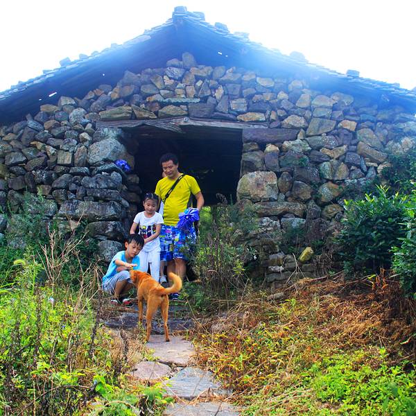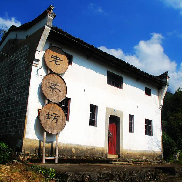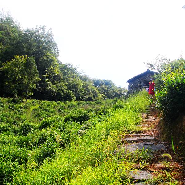 看完了祁红庄园,并不急于回程,前方是龙宫岭古徽道。 远处有栋陶渊明笔下的农屋,那是古人炒制茶叶的作坊,今人收掇了一番,成了一个看点。