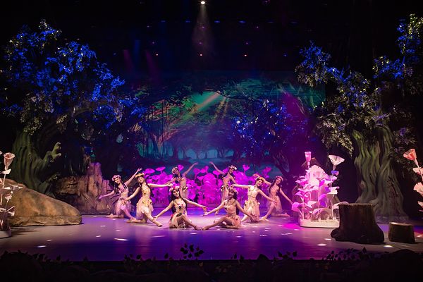 剧场还运用了全国顶尖的灯光舞美和全息投影技术,逼真的布景让你仿佛身临其境,沉浸在这场视听盛宴中。
