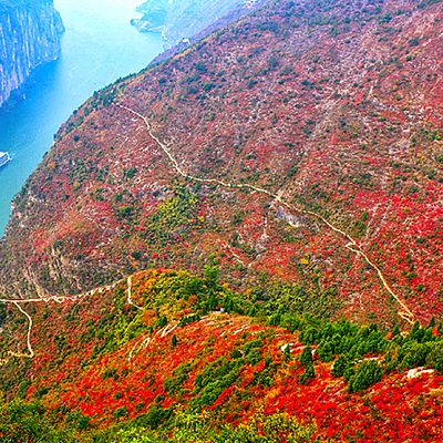 🍁观赏方式 ① 从山顶视角观赏红叶视野最佳,你可以一览众山红叶于眼底。 ② 乘船观看红叶也是不错的选择,你可以在船上远观三峡红叶全景。