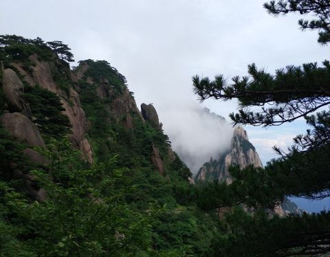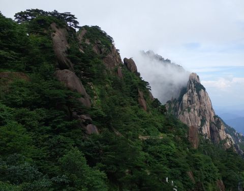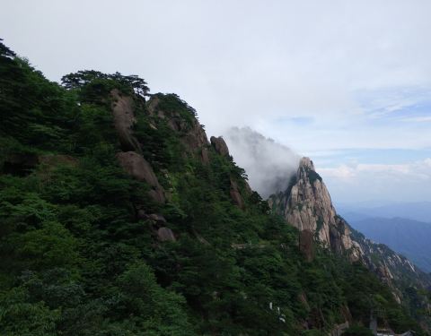 ...真的看不出来 比如这个松鼠跳天都 在天都峰旁边有个山 像个松鼠一样奔向天都峰跳 所以有这个名字在黄山有很多的景点是需要想象的 有时候如果没有导游点破真的看不出来 比如这个松鼠跳天都 在天都峰旁边有个山 像个松鼠一样奔向天都峰跳 所以有这个名字