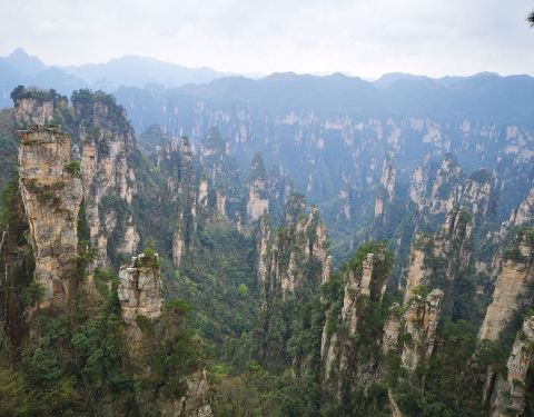 这是天子山的精华,大型盆景区。有几个观景台围绕着峰林。最佳观景台就是游客最多的那个。云青岩观景台也是抵近观赏峰林的好地方。