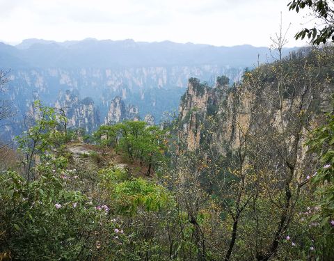 最佳观景台就是游客最多的那个。这是天子山的精华,大型盆景区。云青岩观景台也是抵近观赏峰林的好地方