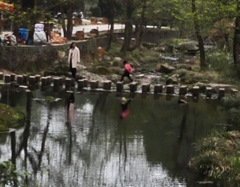 从黄檀硐古村落出来后,即坐大巴到了西漈景区,先是看到了一处水明如镜的湖,群山倒映在水中,不时有大鱼游过,看不清其形状,只能看到游过漾起的波纹,这里最有名的该是八折瀑,俗称凤头,这里未经过度开发,一切都是那么自然,空气清新,满眼绿意,走在姿态万千的奇峰怪石中,移步换景,感叹大自然的鬼斧神工!
