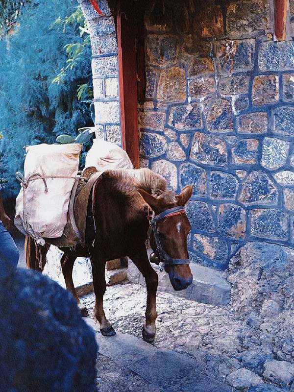 停🚗后,这次入住的是茶马石头城丽世山居酒店。要步行差不多20分钟才到,酒店💁♂️安排骡子来帮忙驮着行李🧳。🏨丽世山居风格融入了纳西族东元素,而且酒店提供的餐食都是本地农家有机🥬