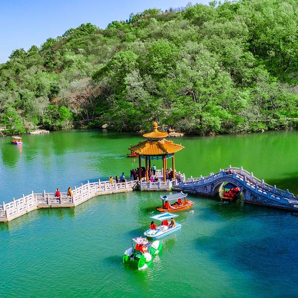 深秀湖因其三面环山,景色清丽,取《醉翁亭记》中“望之蔚然而深秀者琅琊也”而得名深秀湖因其三面环山,景色清丽,取《醉翁亭记》中“望之蔚然而深秀者琅琊也”而得名。湖水源自琅琊溪,清澈见底。湖中有九曲桥、玉带桥、湖心亭。岸边有水榭亭台,轩廊石矶,可泛舟垂钓,仰观青山,俯视绿水,其...深秀湖因其三面环山,景色清丽,取《醉翁亭记》中“望之蔚然而深秀者琅琊也”而得名。湖水源自琅琊溪,清澈见底。湖中有九曲桥、玉带桥、湖心亭。岸边有水榭亭台,轩廊石矶,可泛舟垂钓,仰观青山,俯视绿水,其乐无穷。深秀湖原名为“和平水库”,建于60年代初。其下通余家洼水库,四季潺潺,清澈透底。桥墩用青石砌成,具有明显的现代建筑特色。桥上的湖心亭,亭顶盎金黄玻璃瓦,六角置有琉璃禽篱,又有古建筑特点。空中航拍的湖心亭,四面被绿树和青山包围,甚是美丽! 展开