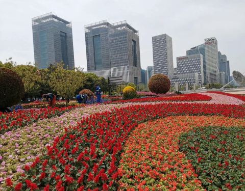 地方很大,花坛也很漂亮,外国人特多,都环顾广场四周城市风光而赞叹