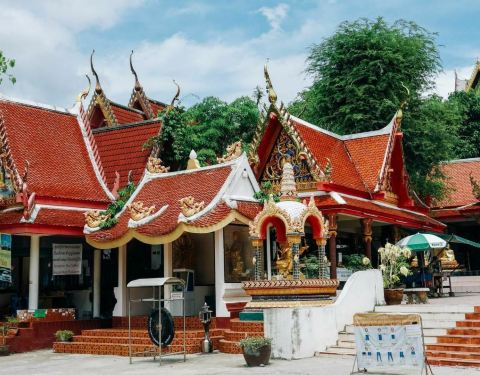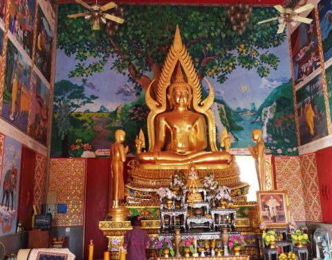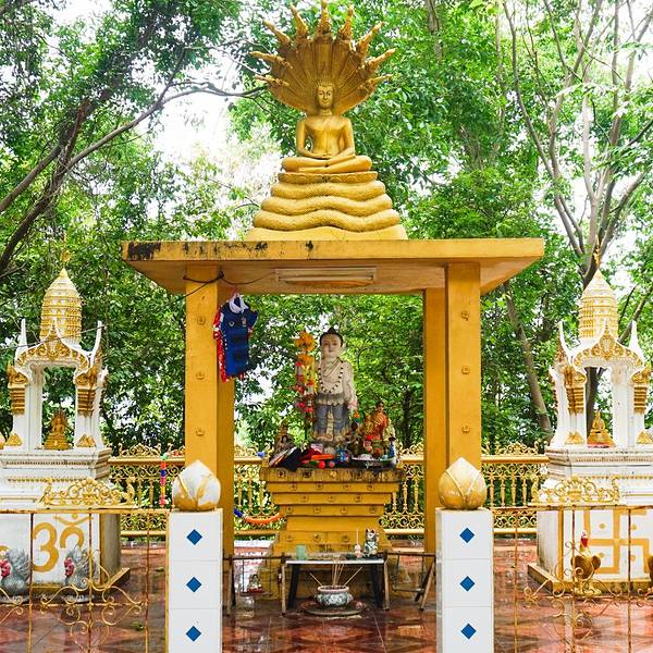 位于大佛海滩边的小岛上,是苏梅岛上出名地标和景点位于大佛海滩边的小岛上,是苏梅岛上出名地标和景点。寺庙内有一尊高12米的金色大佛像,雄伟壮观,从任何角度接近苏梅岛,都能一眼先看到这尊高大的佛像。
