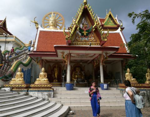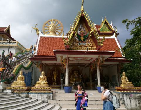 ...的,因为他算是苏梅岛算比较有名的一个寺庙了,而且它的地势比较高,完全可以把它当成一个观景台来看这个寺庙还是可以的,因为他算是苏梅岛算比较有名的一个寺庙了,而且它的地势比较高,完全可以把它当成一个观景台来看。也是一个典型的泰国寺庙,金碧辉煌。