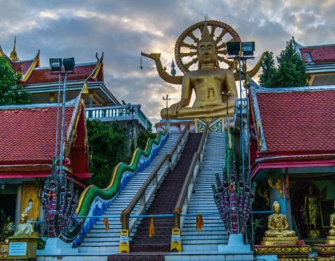 对寺庙感兴趣的朋友去到苏梅岛的话可以去看看。是苏梅岛最著名的寺庙,也是地标性建筑是苏梅岛最著名的寺庙,也是地标性建筑。这座高12米的金铸大佛像在空中和陆地几公里外就清晰可见,十分壮观。对寺庙感兴趣的朋友去到苏梅岛的话可以去看看。