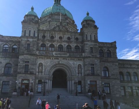 是维多利亚的地标建筑,早年由英国设计师设计,典型的欧式建筑,目前是加拿大BC省议会大厦所在地。门前的大草坪十分漂亮,草坪前有维多利亚女王的雕塑,大楼正对着美丽、繁忙的维多利亚港,右前方为著名的帝后饭店,共同构成了维多利亚的旅游中心。目前议会大楼每周-一周五免费向公众开放一楼、二楼,并由工作人员进行介绍,是一个值得休闲旅游、又能了解维多利亚历史的好地方。